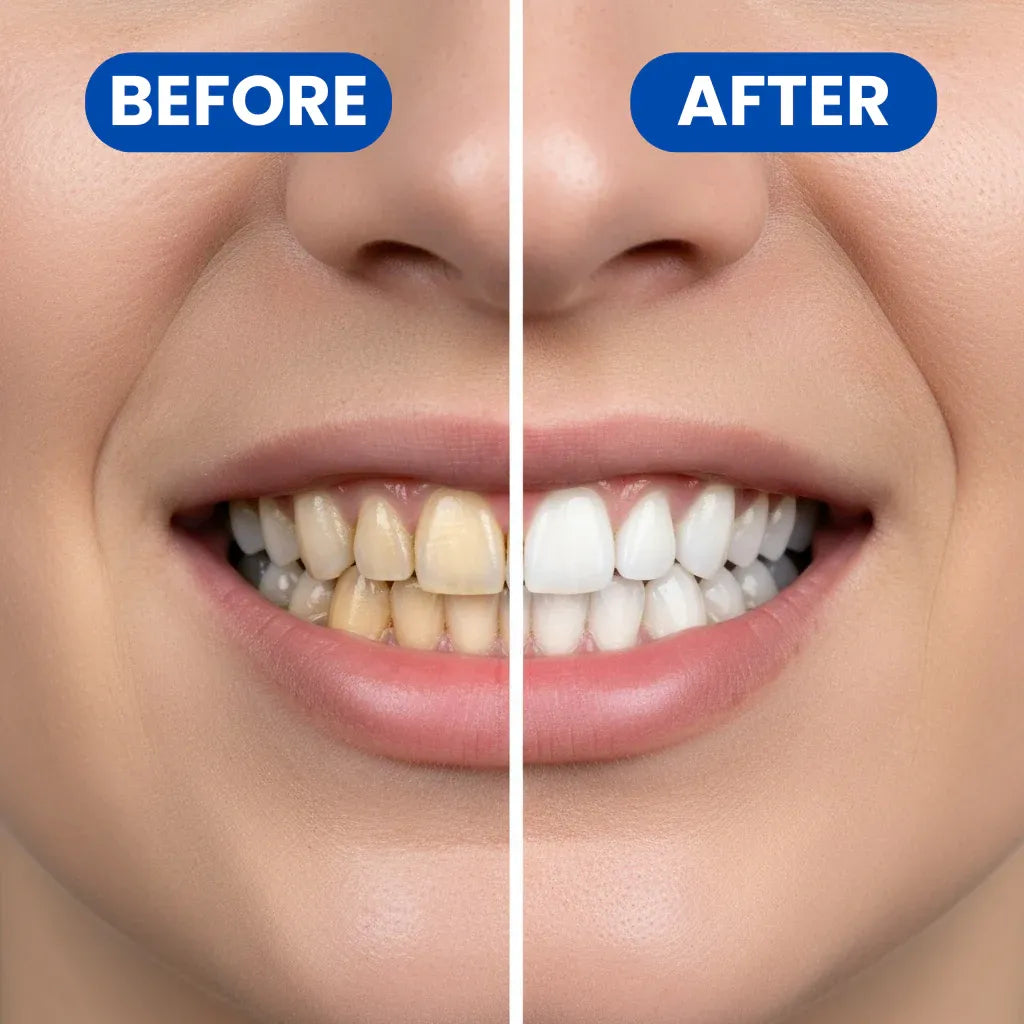 Our whitening strips use a fast-acting formula that breaks down stains on contact, helping remove years of discoloration from coffee, tea, wine, and smoking — starting from the very first use.